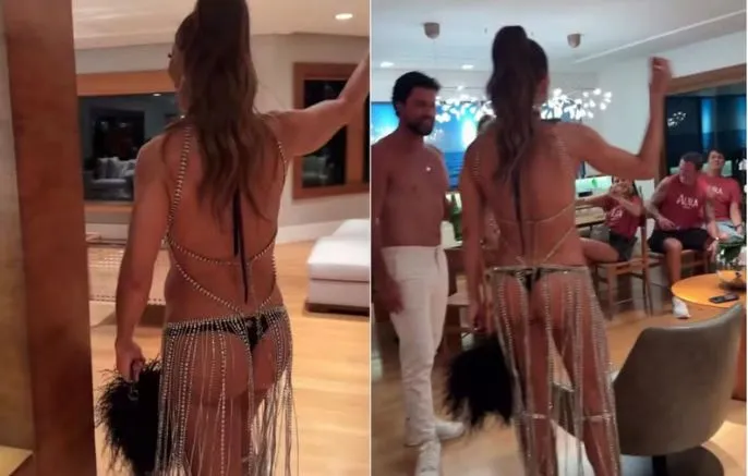 Antes do desfile, Juliana chamou atenção ao mostrar o look escolhido para curtir o camarote do sambódromo: um fio-dental que rapidamente repercutiu nas redes sociais. A Unidos do Viradouro será a terceira escola a entrar na avenida na segunda-feira.