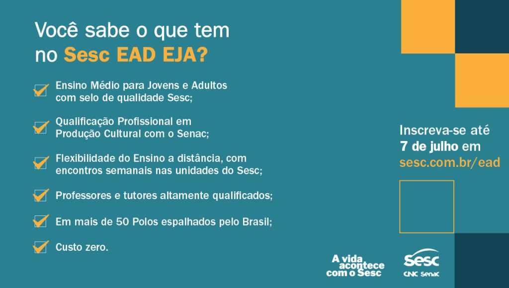 Sesc EaD EJA Ensino Médio gratuito está com inscrições abertas